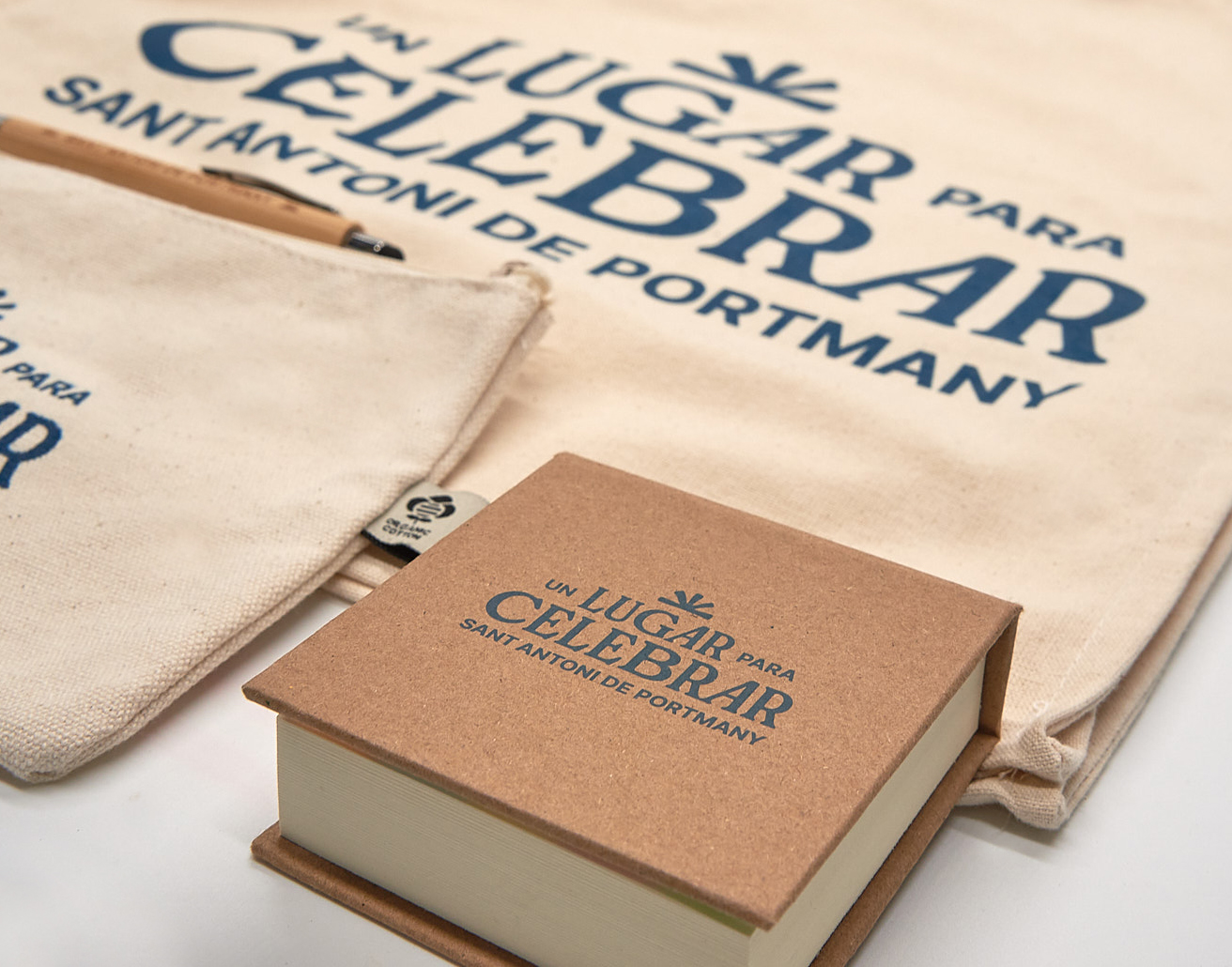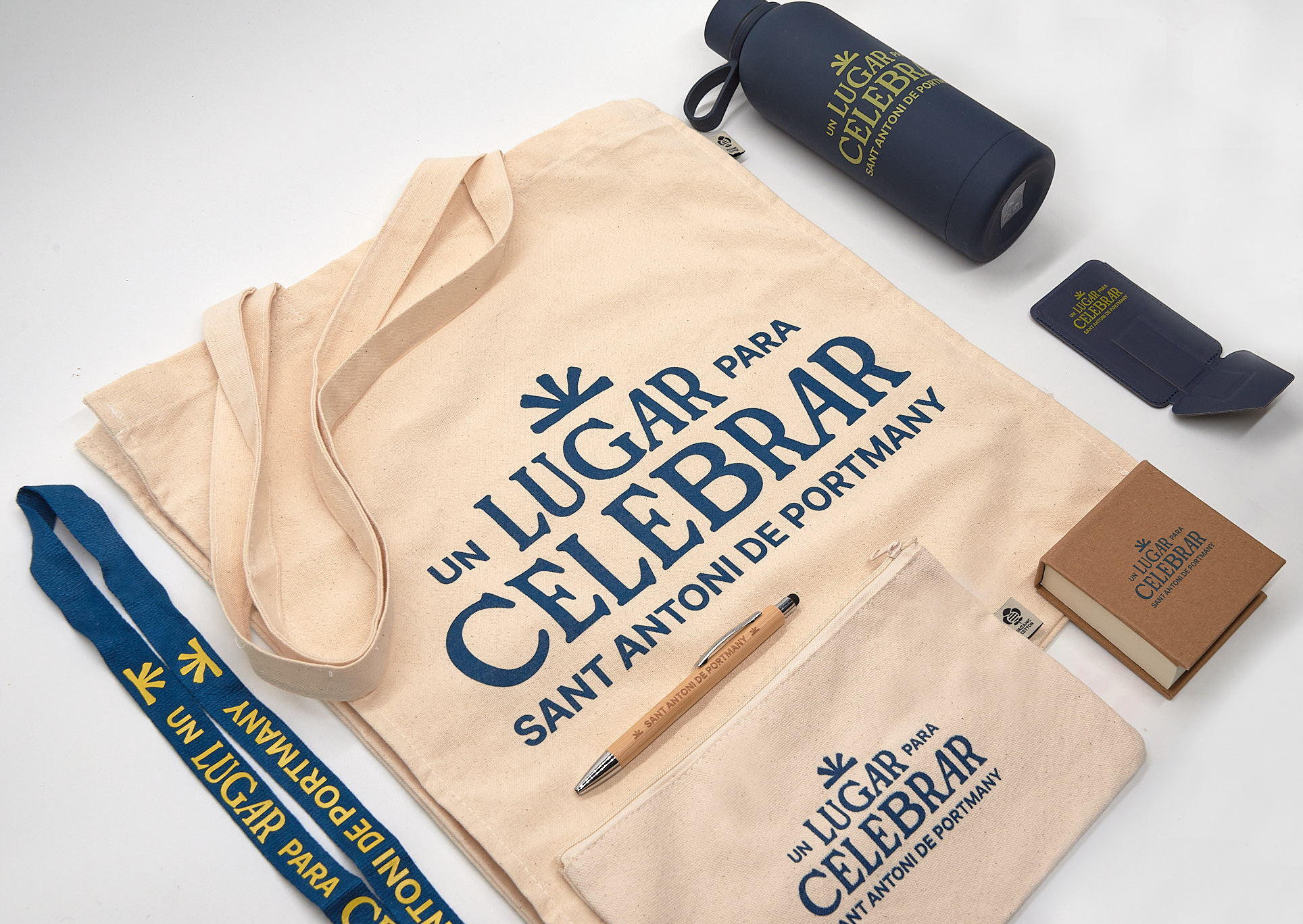 Para el departamento de Turismo del Ajuntament de Sant Antoni de Portmany desarrollamos una propuesta de merchandising sostenible pensada para su presencia en ferias y encuentros profesionales, partiendo de la imagen institucional de este año.